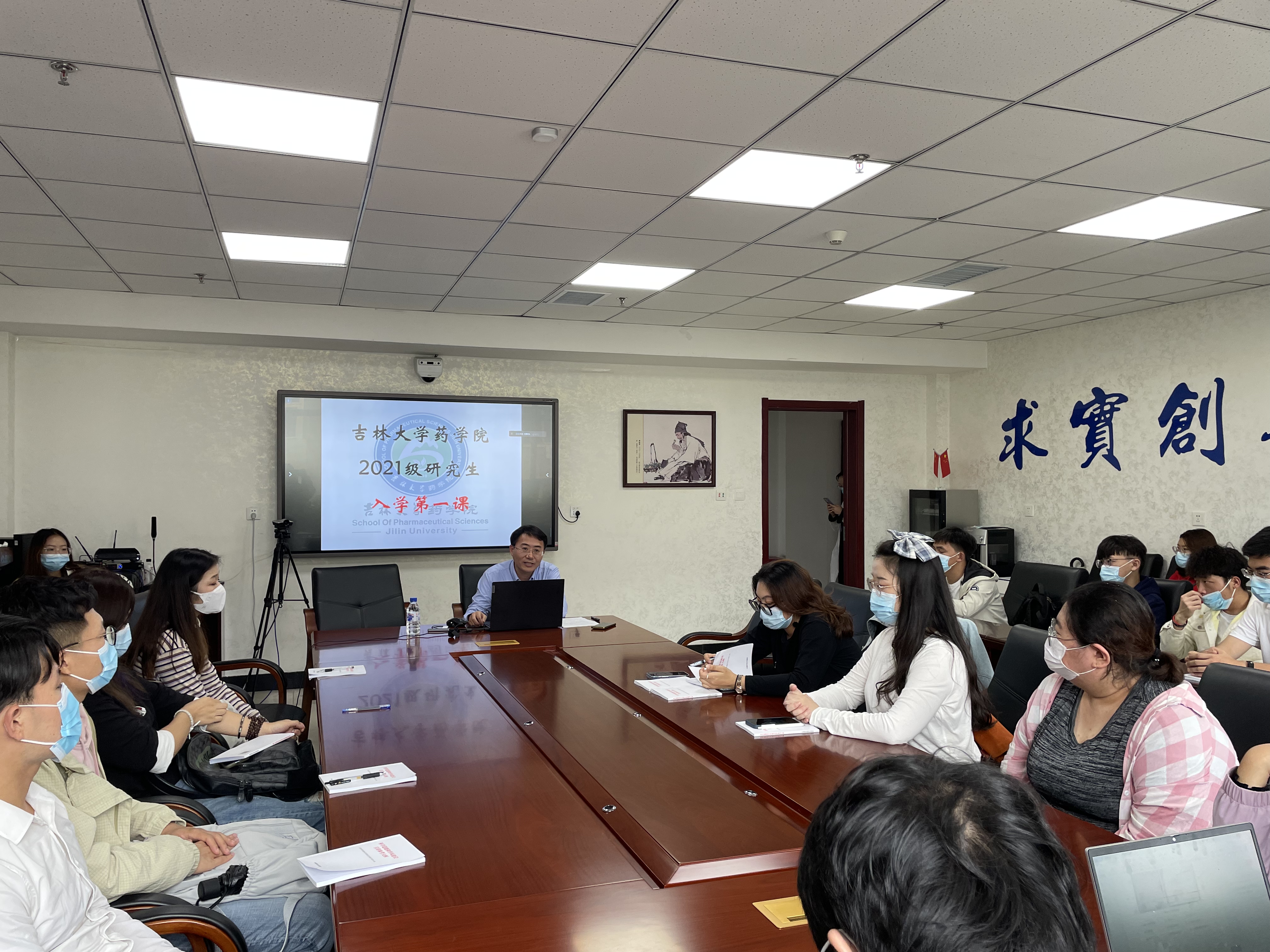 On September 22, 2021, the School of Pharmaceutical Sciences launched orientation programs. Enrollment education is the first lesson for graduate students, and an important chapter to strengthen graduate education and training. To familiarize the 2021 class of graduate students with the new learning environment and relevant rules and regulations, help them set learning goals, and make life planning, the School of Pharmaceutical Sciences carried out centralized enrollment education programs for them from September 26 to September 27. In the context of regular epidemic prevention and control, the two-day enrollment education programs were conducted both online and offline in Conference Room 508 of the School of Pharmaceutical Sciences.