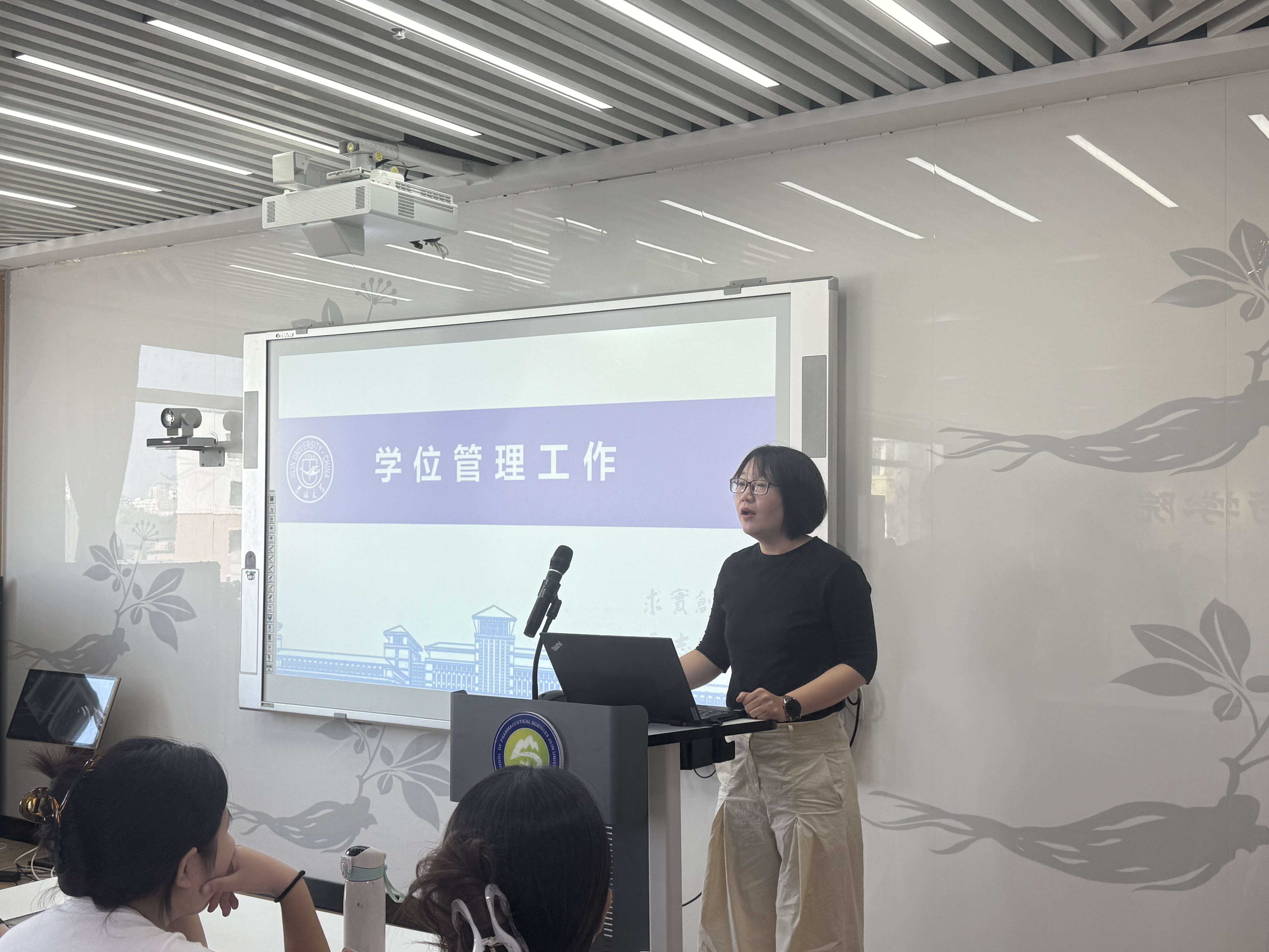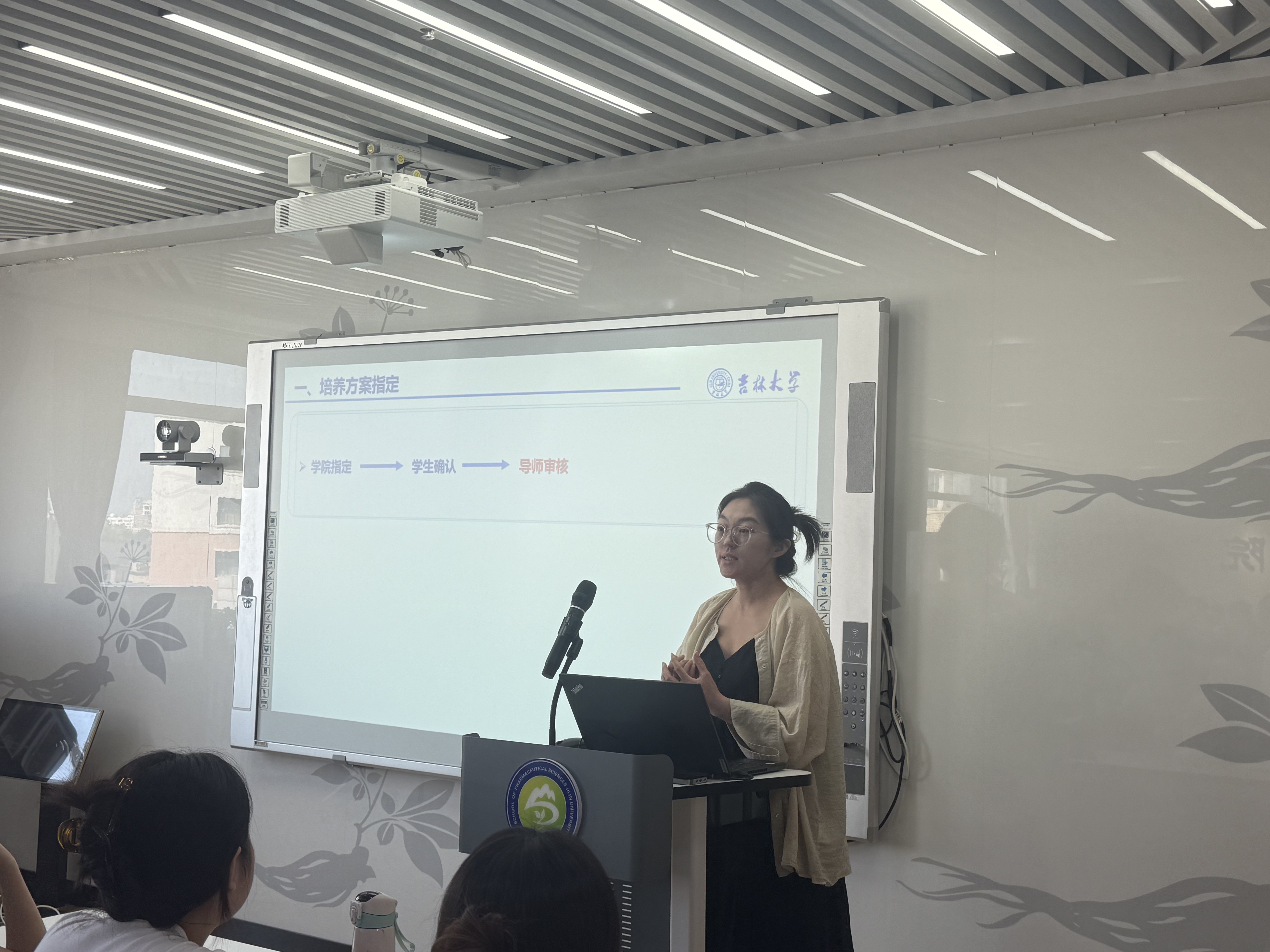 胡欣彤老师重点围绕学业培养,为新生梳理了选课注意事项,以及开题、中期考核、答辩等关键环节的基本要求。她鼓励同学们主动沟通,借助导师、课题组和学院平台资源,科学规划时间,稳步推进科研课题。