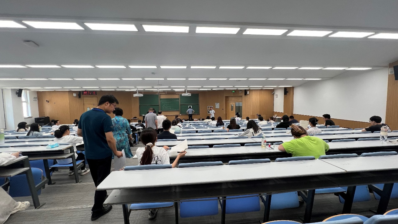 巡查显示:监考教师佩戴监考证,考场均严格执行"三统一"标准(座位间隔、物品存放、身份核验)和"三宣读"制度(纪律、流程、注意事项)。考生们专注作答,考场环境整洁有序,试卷命题质量与学生答题状态呈现正向关联,充分展现学院"教-学-考"良性互动的育人成效。项金宝院长在巡考中强调:"要将考风建设作为学风建设的突破口,通过‘诚信教育前置化、巡考督导常态化、违纪处理警示化’三位一体机制,筑牢人才培养质量防线"。
