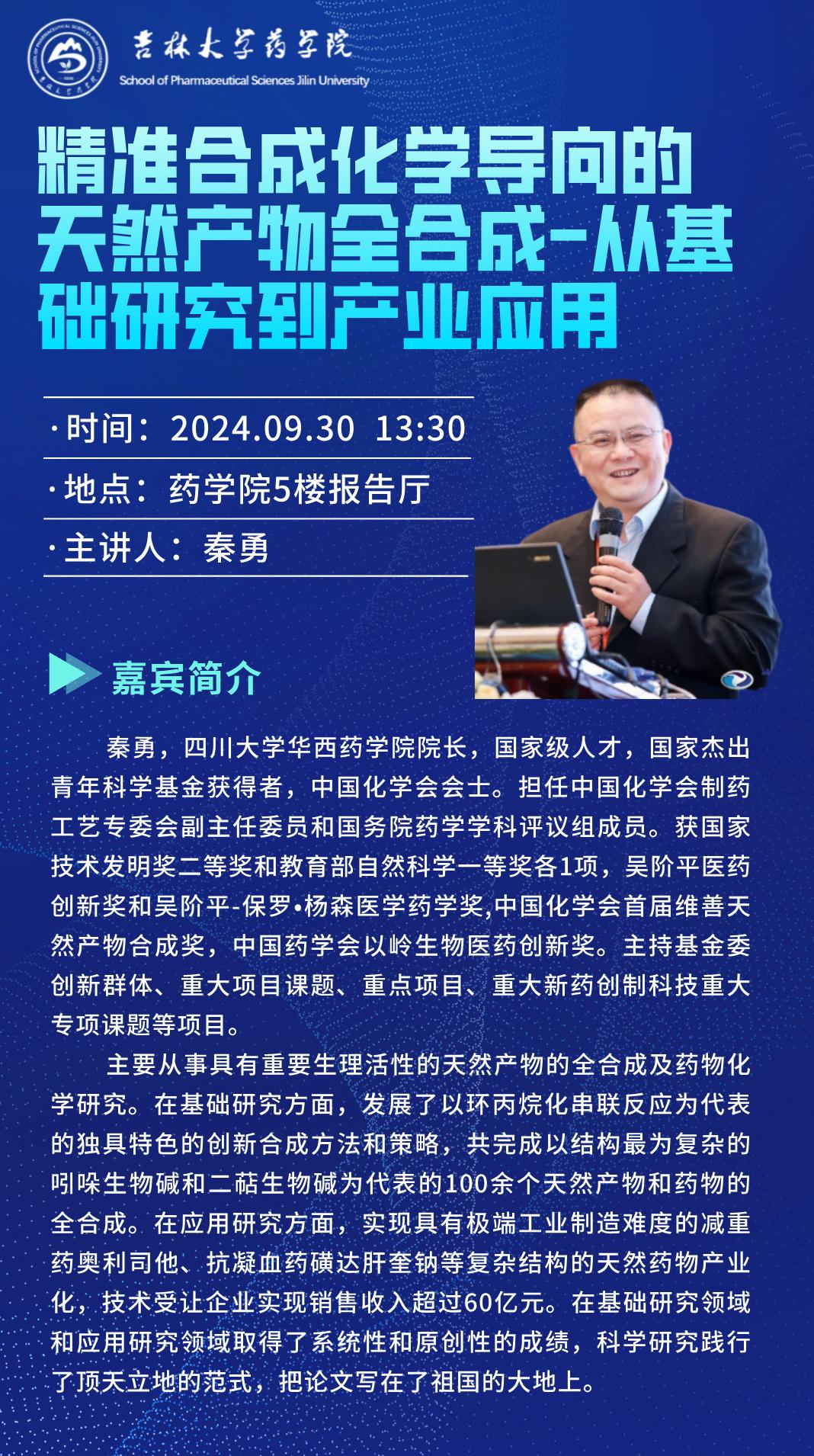 新葡京 学术报告会——精准合成化学导向的天然产物全合成—从基础研究到产业应用