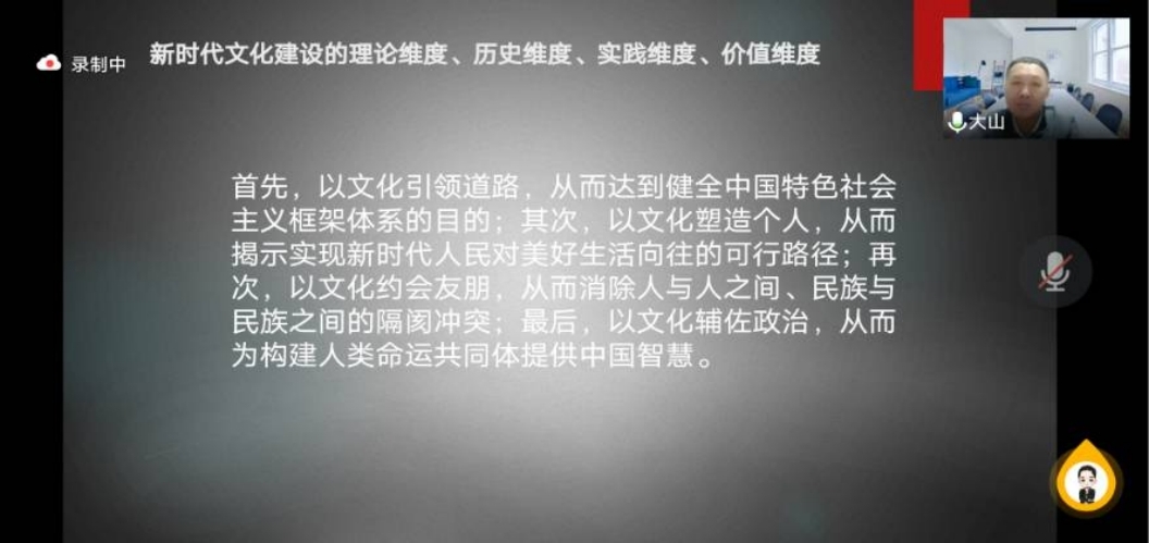 哲学社会学院2021级博士研究生马永博士主讲的以《新时代关于文化建设的历史成就》为主题的相关报告。