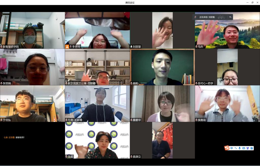 院长马杰、党委书记曲渊立、党委副书记刘丽慧、副院长王毅、研究生秘书秦鹏华与入驻到学生宿舍的研究生辅导员耿智慧等各位老师与学院各公寓学生代表进行视频连线,认真倾听他们在疫情防控期间的经历和感受,详细询问了同学们目前的生活状况、身体状况、思想动态、学习情况及各方面需求等。