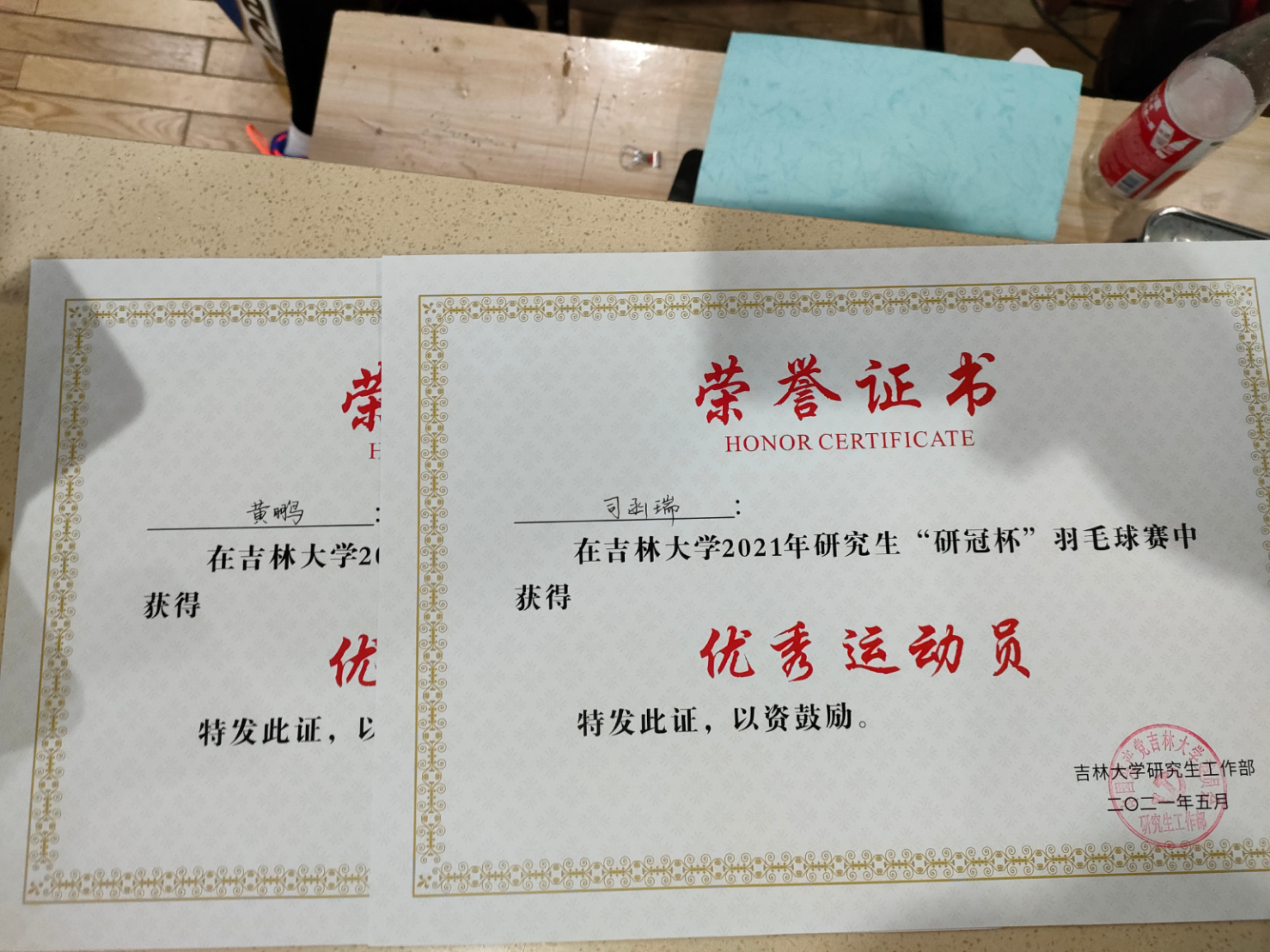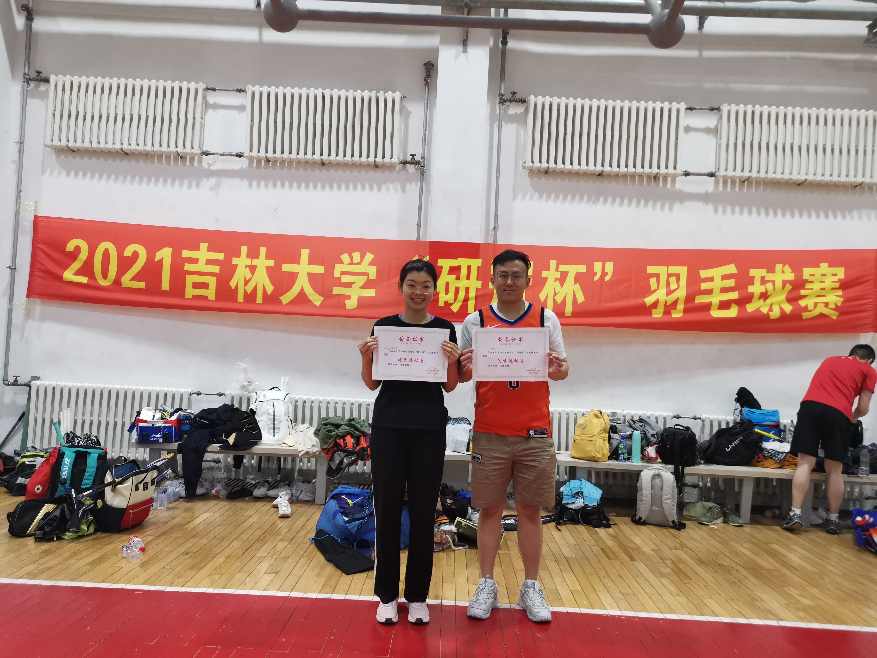 2021年研究生“研冠杯”羽毛球赛“优秀运动员”荣誉称号!为我院其他参赛选手鼓舞了士气,振奋了精神!男单选手方帅和刘俊彤同学,女单选手焦玉凤和陈小玲同学,混双选手史大臻、赖思含同学在赛场上尽情挥洒汗水,展示着令人炫目的技巧,把羽毛球的魅力完美地展现了出来!整个比赛中,大家欢声笑语,充满活力,展现了新葡京