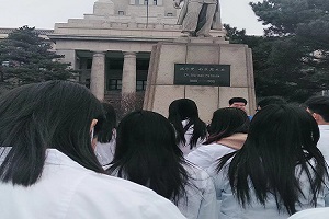 缅怀革命先烈,弘扬白求恩精神,清明节,新葡京 医学部各学院学生会代表,在诺尔曼.白求恩雕像前开展了清明祭扫献花活动。活动由新民校区学生会代表主持,整个活动进行得庄严肃穆,井然有序。