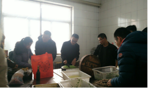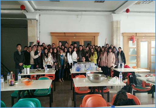 冬末的天气已经染了一丝春的气息,下午一点半,同学们伴着灿烂的阳光到达食堂,目光里透着跃跃欲试的兴奋,端上事先准备好的饺子皮和调好的馅儿,包饺子活动正式开始。元宝形,小鱼状,包子样,太阳状……大家不愧来自祖国各地,包的饺子形状五花八门,你向我请教这种包法,我跟你学习那种花式,食堂里叽叽喳喳一片,却有说不出的温馨与亲密。一个半小时的“奋战”后,全部饺子包好,下水,出锅,刚端上桌,大家就迫不及待得吃起来。不知是自己的劳动果实分外香,还是大家都有做饭的潜力,这顿饺子宴得到了同学们的一致好评,孙凯老师也是赞不绝口。本次饺子宴获得圆满成功。
