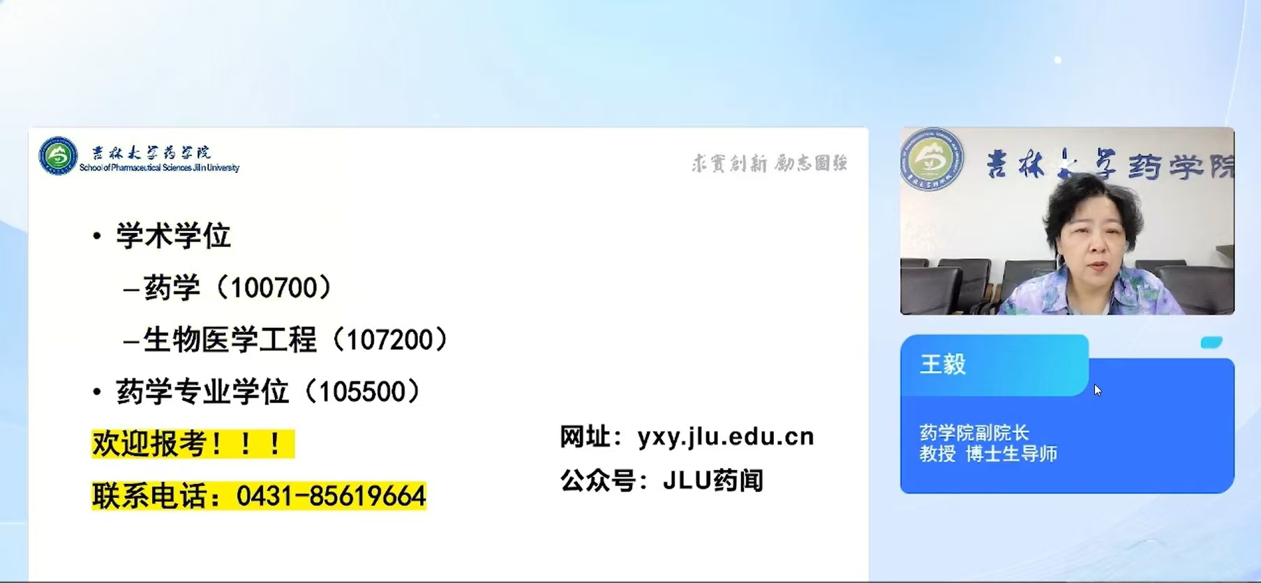 直播宣传活动持续一个小时,观看近4000人次,在线学生反响良好。此次活动为来自全国各大高校的学生详细介绍了学院硕士研究生招生政策,为扩大药学学科影响力、吸引优质生源打下了坚实的基础。学院今后将继续开展系列研究生招生宣传,采取线上、线下相结合的宣传途径,进一步优化生源结构,努力提升我院研究生培养质量。