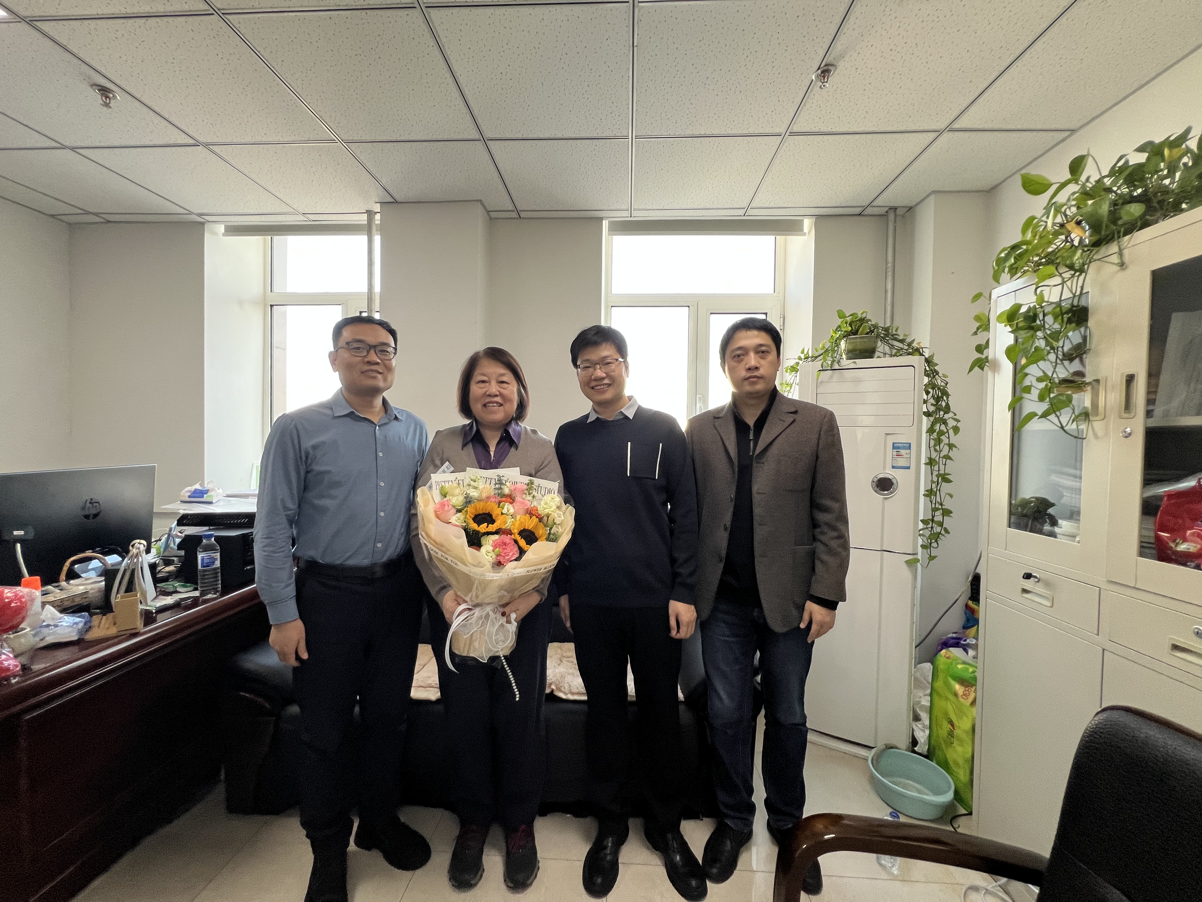 在裴瑾教授教研室,项金宝和孙曙光关切地询问裴瑾教授的身体和生活状况,向裴瑾对新葡京