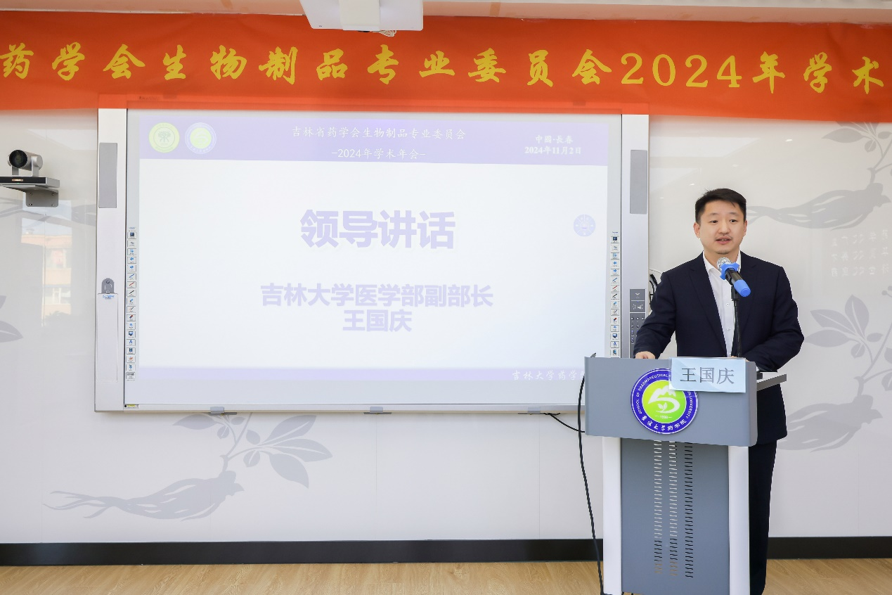 医学部副部长王国庆、吉林省药学会理事长徐飞出席会议并讲话。省药学会生物制品专业委员会委员及相关教师、学生和药学工作者参加会议。