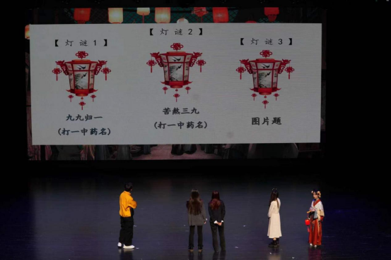 游戏环节采用中华传统文化的灯谜形式,大屏幕上的三个灯笼分别装有中草药相关的谜题,每个灯笼由主持人挑选三个幸运观众上台来猜中草药的名字,观众们积极举手,参赛选手才思敏捷,快速给出灯谜的正确答案,在展现古籍经典的同时也带大家了解到更多的中药知识。