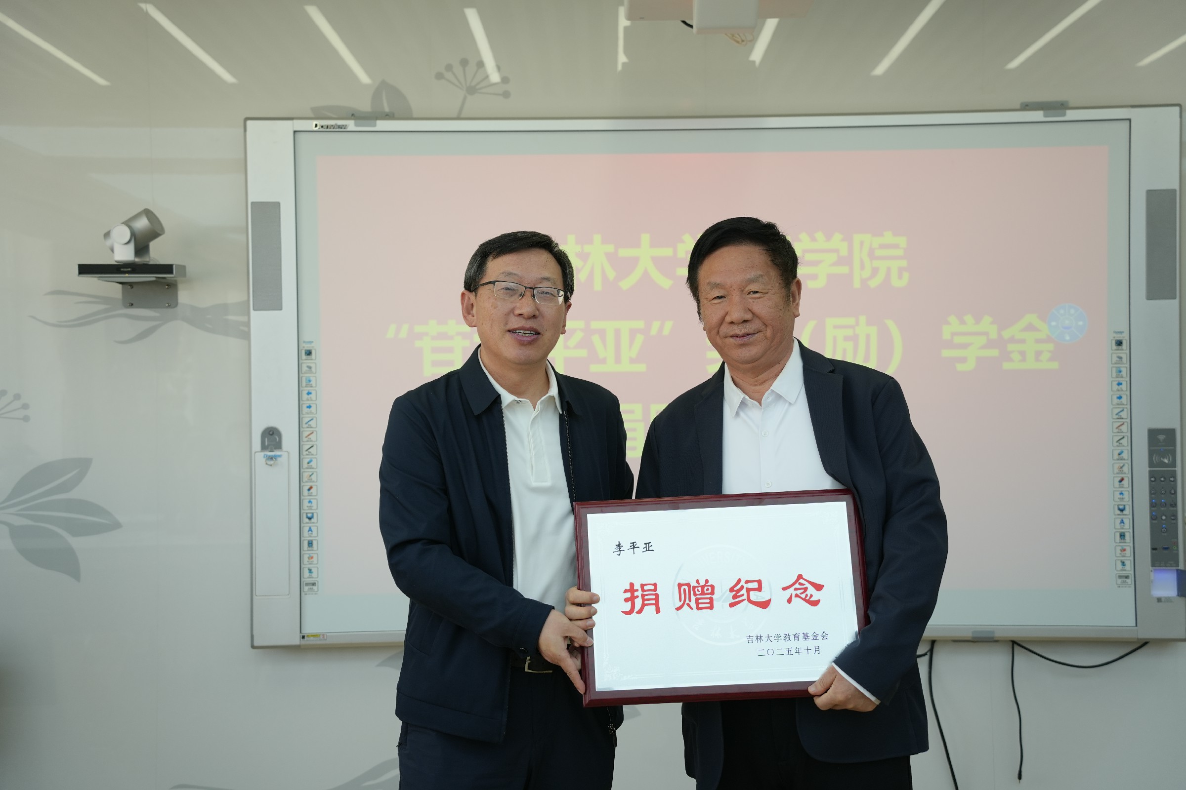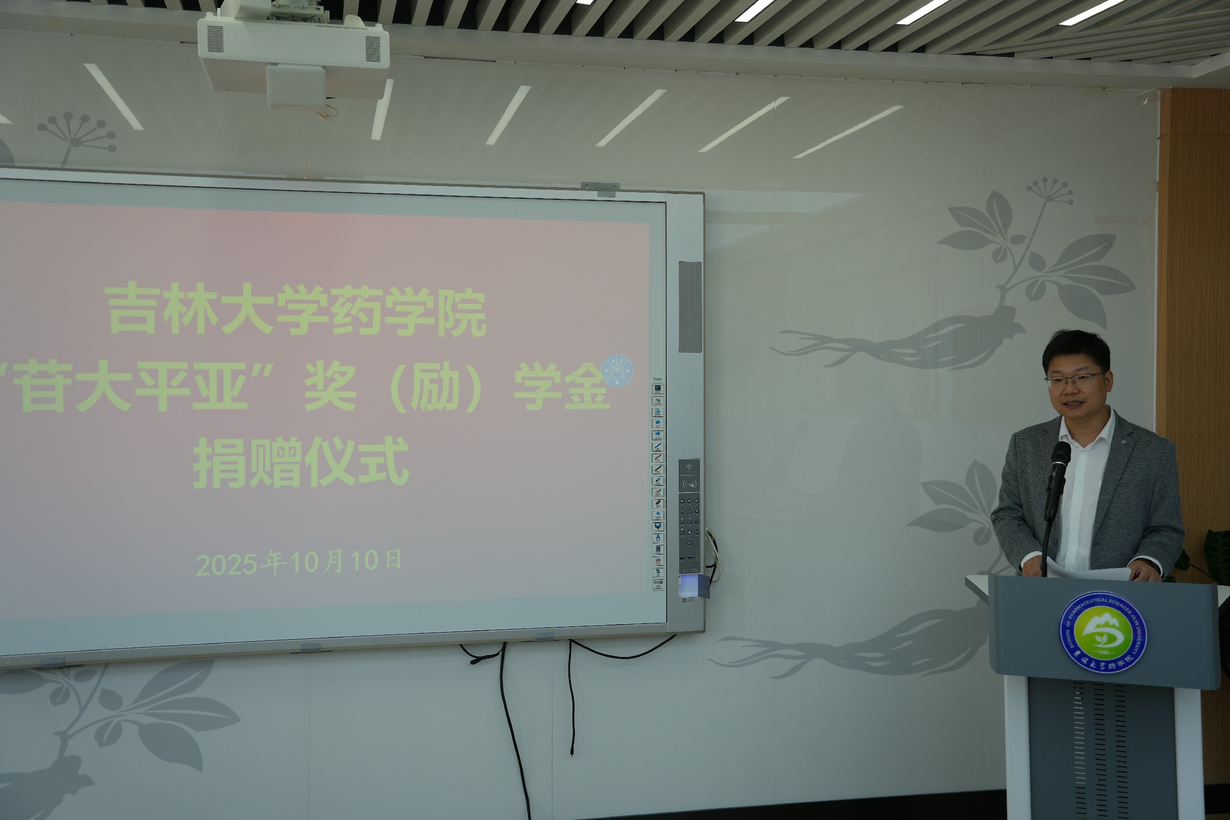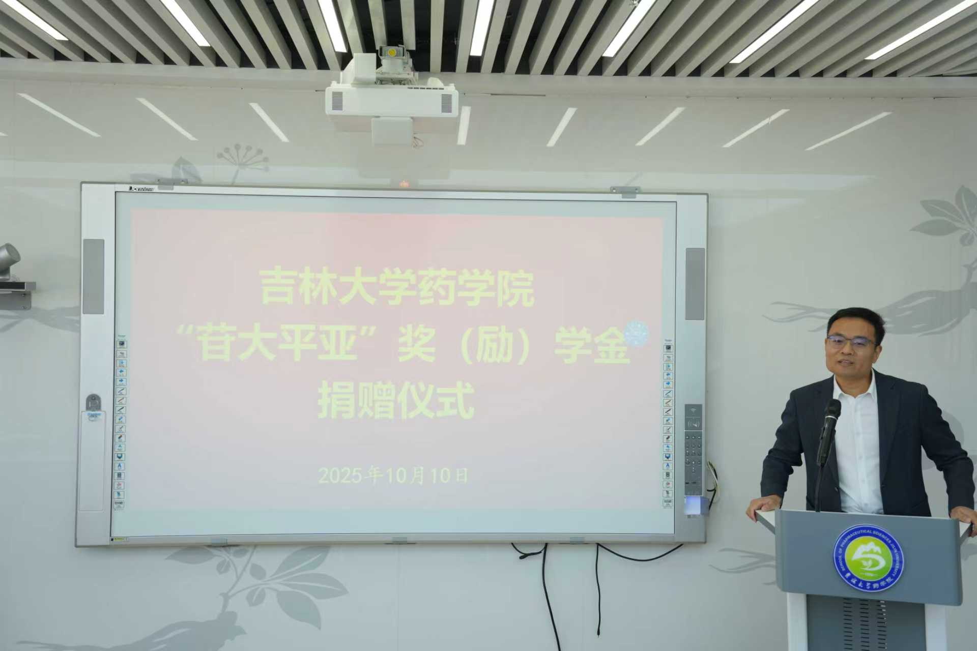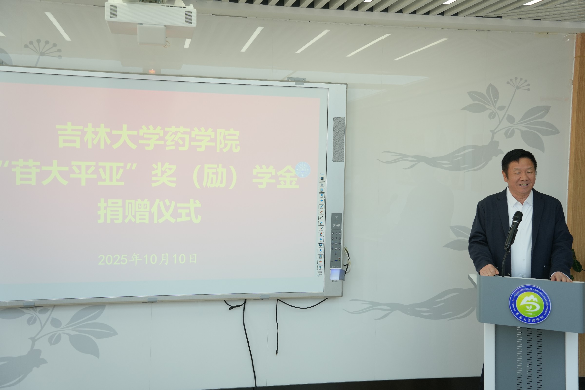 致辞。他再次向李平亚教授的善举致以诚挚谢意,指出“苷大平亚”奖(励)学金的设立不仅为药学学子提供了重要的物质支持与精神激励,也将进一步优化学院育人生态,推动人才培养质量持续提升。学院将严格遵循捐赠协议,科学管理、规范使用资金,确保其发挥最大育人效能,努力培养更多堪当民族复兴大任的优秀药学人才。